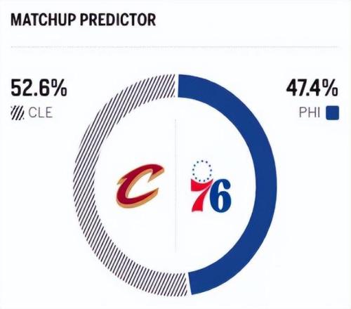 两队本赛季已有过一次交锋,上一次交手骑士主场以11分之差力克76人。赛前,美媒ESPN对本场比赛进行了胜率预测,76人胜率仅有47.4% ,略占下风,骑士胜率则为52.6% 。