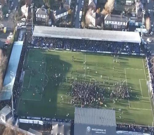 故事的起点,是废墟上的重建。2020年9月,拥有146年历史的老牌球队麦克斯菲尔德镇因债务危机宣告破产解散,这座以丝绸产业闻名的小镇,足球信仰一度崩塌。幸运的是,企业家罗伯特·斯梅瑟斯特在一个月后收购了主场莫斯罗斯球场及剩余资产,于10月13日创立了麦克斯菲尔德足球俱乐部,延续了“丝人”的昵称与小镇的足球血脉。从第九级别联赛起步,这支重生的球队用4年时间完成三级跳,2024-25赛季以北部超级联赛冠军身份升入英议北,站在了第六级别联赛的舞台上。